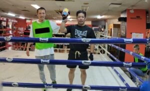 三好師範代もスパーリングを体験してみたいとのことでそれに向けて稽古をしておりました。そしてその成果を試すべくボクシングのスパーリング大会に出場しました。